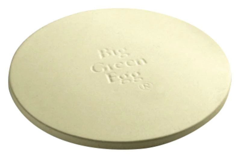 The Big Green Egg Pizza / Baking Stone is a versatile piece of cookware for baking a variety of recipes from pizzas to breads to desserts. The stone distributes heat for even baking and browning and the ceramics pull moisture from the outer surface of the dough for brick oven crustiness.