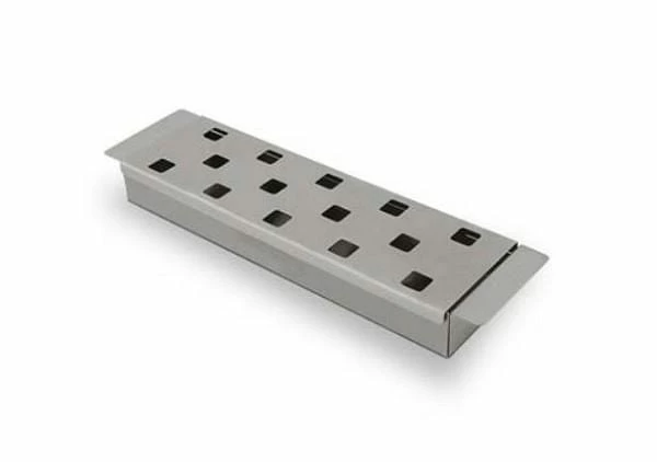 Stainless steel smoker box with handles and a hinged lid. Simple, easy, smoke flavor.