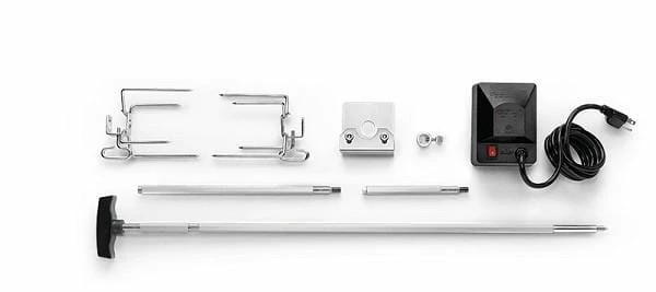 Whether you have a compact Rogue 365, 425 or a large Rogue 525 Series Model, this Stainless Steel, Heavy Duty, Multi-Piece Rotisserie Kit will fit your needs. Made with food grade stainless steel, the square spit rod features rod extensions to ensure that you can go the distance. The heavy-duty motor can turn up to 12 kilograms of a balanced load. The two four pronged forks will securely hold everything you could wish to spit roast and they tighten securely with easy to use thumb screws.