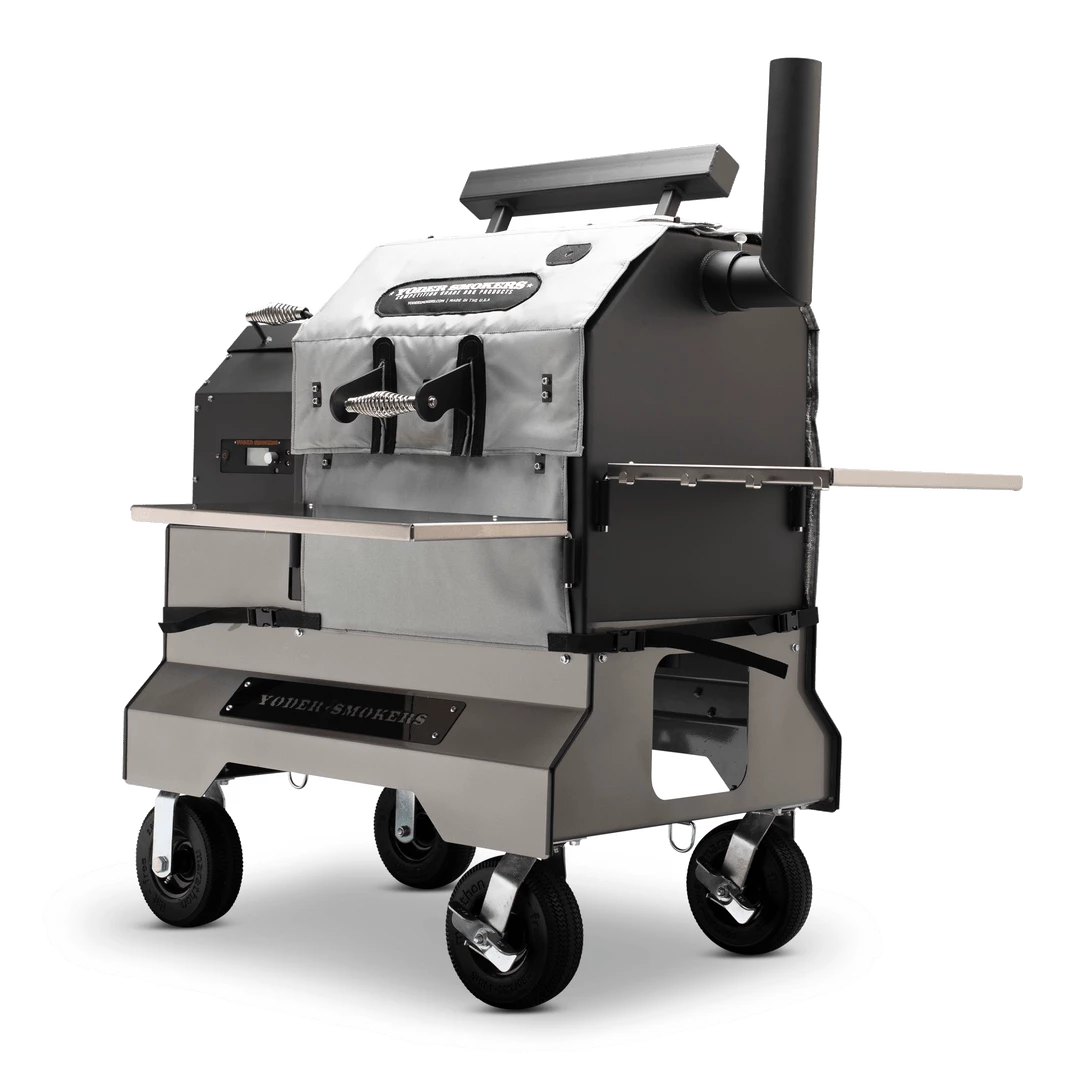 This thermal jacket for the Yoder Smoker YS480 pellet grill helps maintain temperatures during cold winter months. Use less pellets and cook more efficiently. Three pieces fit around cooker body.