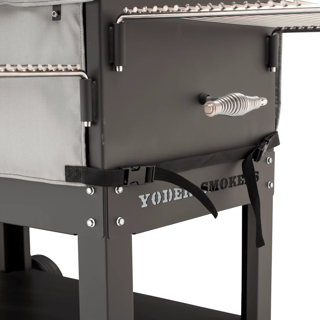 This thermal jacket for the Yoder Smoker YS640 pellet grill helps maintain temperatures during cold winter months. Use less pellets and cook more efficiently. Three pieces fit around cooker body.