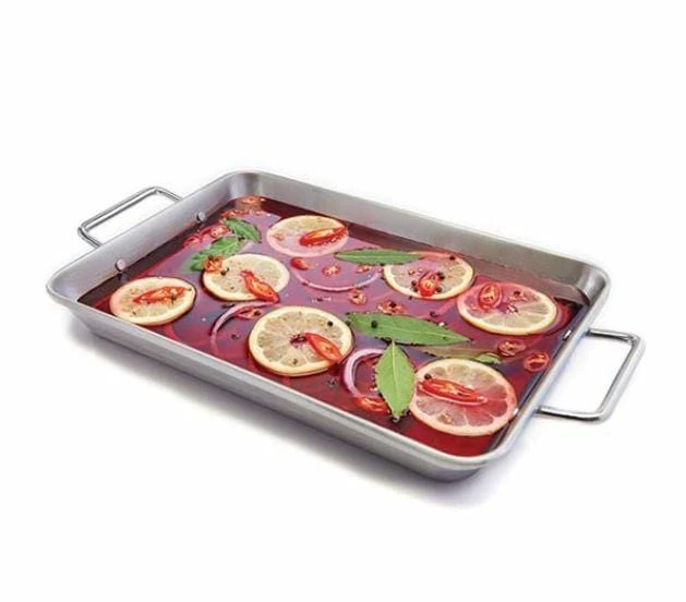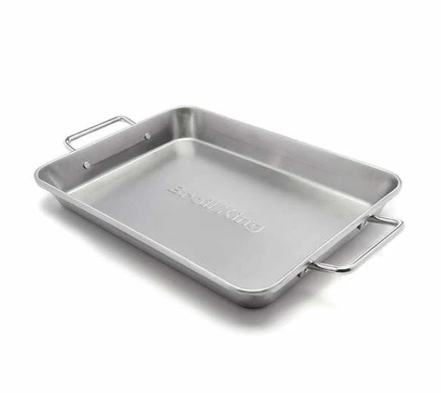 This Broil King Stainless Roasting Pan has integrated handles and an embossed Broil King logo in the face. Perfect for use as a roasting pan or drip tray.