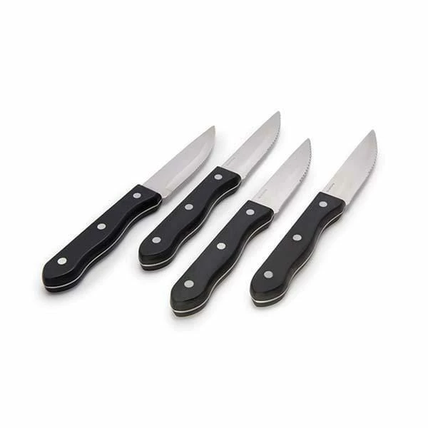 Set of 4 stainless steel steak knives with heavy resin handles.