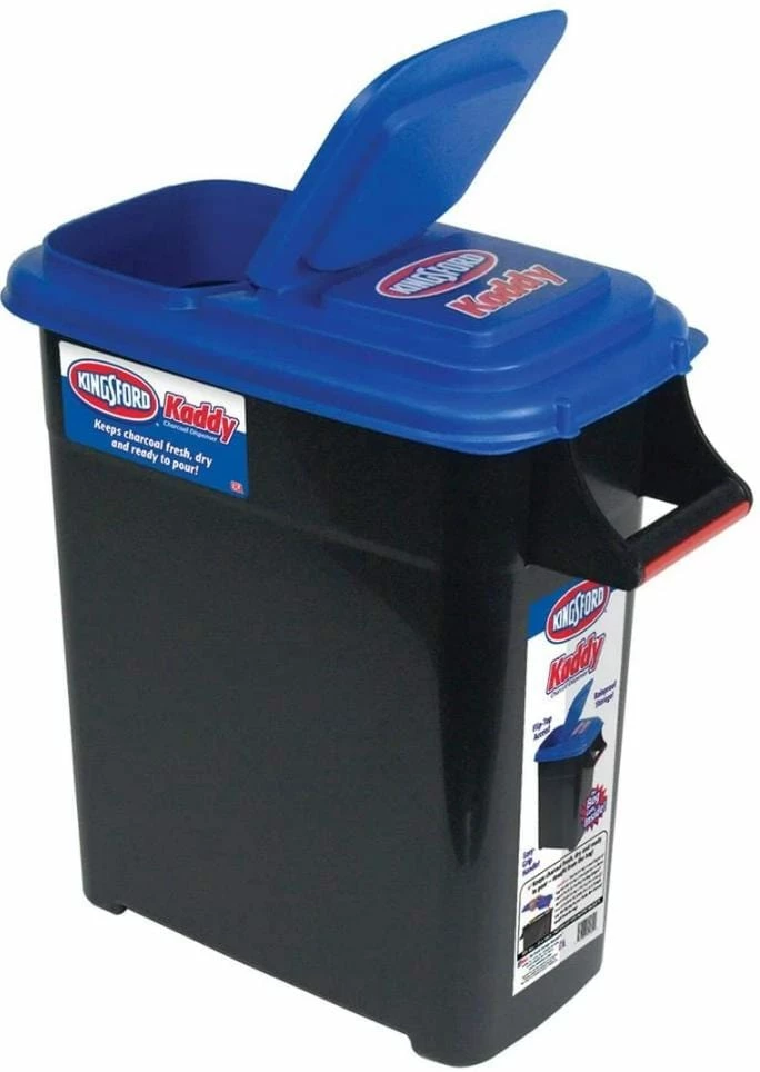 Manufactured from impact-resistant resins and featuring a high content of recycled plastic, the 100% USA-made Kingsford Caddy charcoal storage dispensers offer barbecue lovers a great way to keep and transport charcoal. No more mess or bugs!