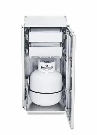 Create a uniform look throughout your Crown Verity outdoor kitchen using our Infinite Series cabinet module. Made of 304 stainless steel, this modular component will increase the storage space in your outdoor kitchen. This storage cabinet comes with a propane holder drawer and two (2) single drawers. Propane tank not included.