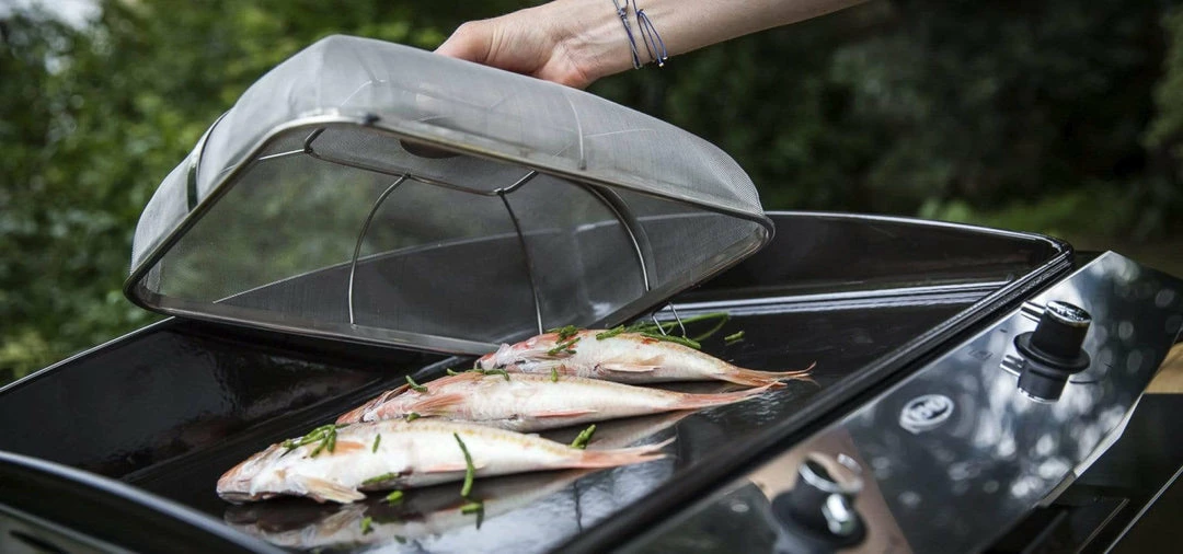 Cooking dome in stainless steel net, made to control the cooking and limit the splashes.