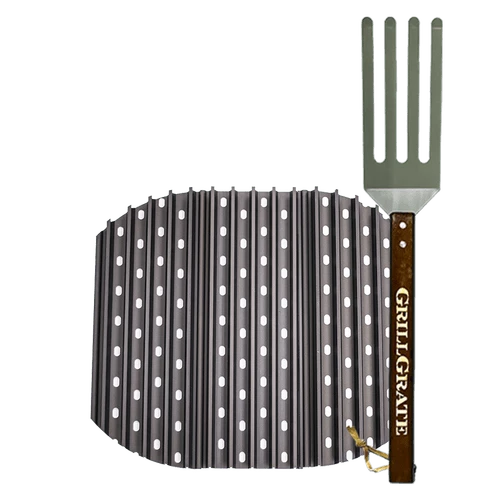 GrillGrates provide protected, high-heat grilling on most types of grills! The bottom plate prevent hot rushing air and flames from charring and drying out food, while keeping the juices sizzling instead of feeding the flames. GrillGrates are simple to use – just place them on top of your existing grate surface! Every set comes with a GrateTool which is part fork, part spatula that fits between the rails to get under your food and lift it without scraping.