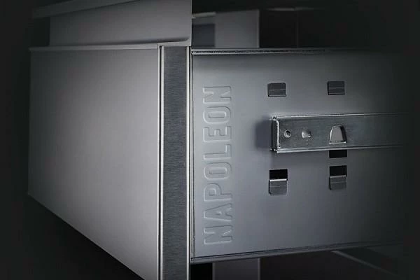 Creating your own custom grill island has never been easier with Napoleon’s Built-In Components. Every great outdoor kitchen needs storage; this stylish single drawer is 18″ x 16″ and features stainless steel construction, soft closing hardware, seamless trim, and anodized aluminum handles. Perfect for storing your favorite Napoleon Accessories, spices, and anything else you need for outdoor cooking.