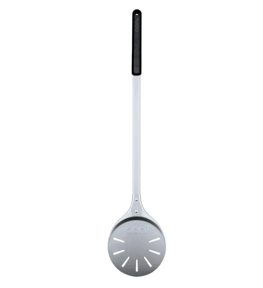 Cook your pizzas faster with the Ooni Pizza Turning Peel, keeping pizzas in contact with the stone baking board as you spin them like a pro in your flaming-hot Ooni uuni pizza oven. The seven-inch, durable anodised aluminium surface has a non-stick effect for sliding right under pizzas, while the perforations let excess flour fall away for a perfectly cooked pizza base.