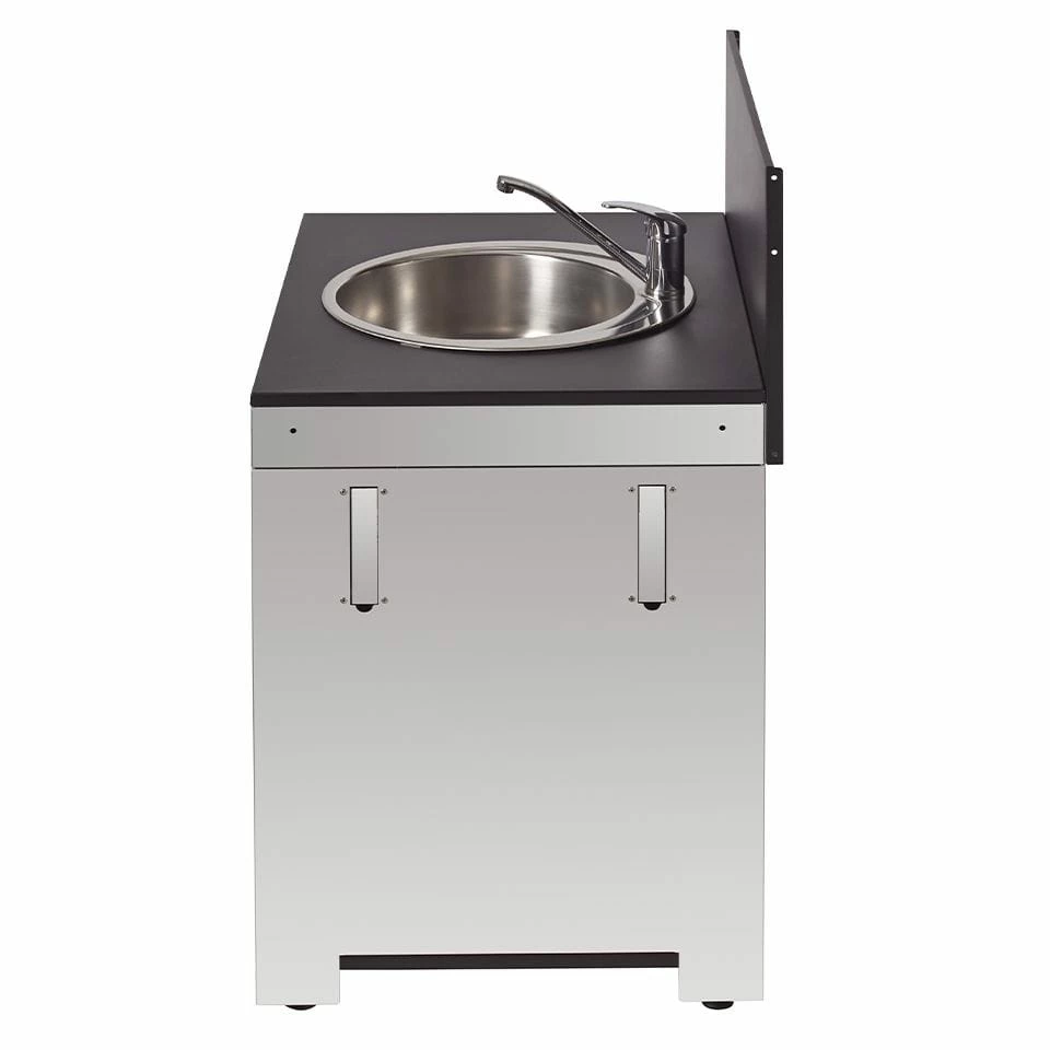 Kitchen Modulo stainless with 1 galvanized steel door + backboard + 1 sink + 2 dials + 2 adjustable handles & feet