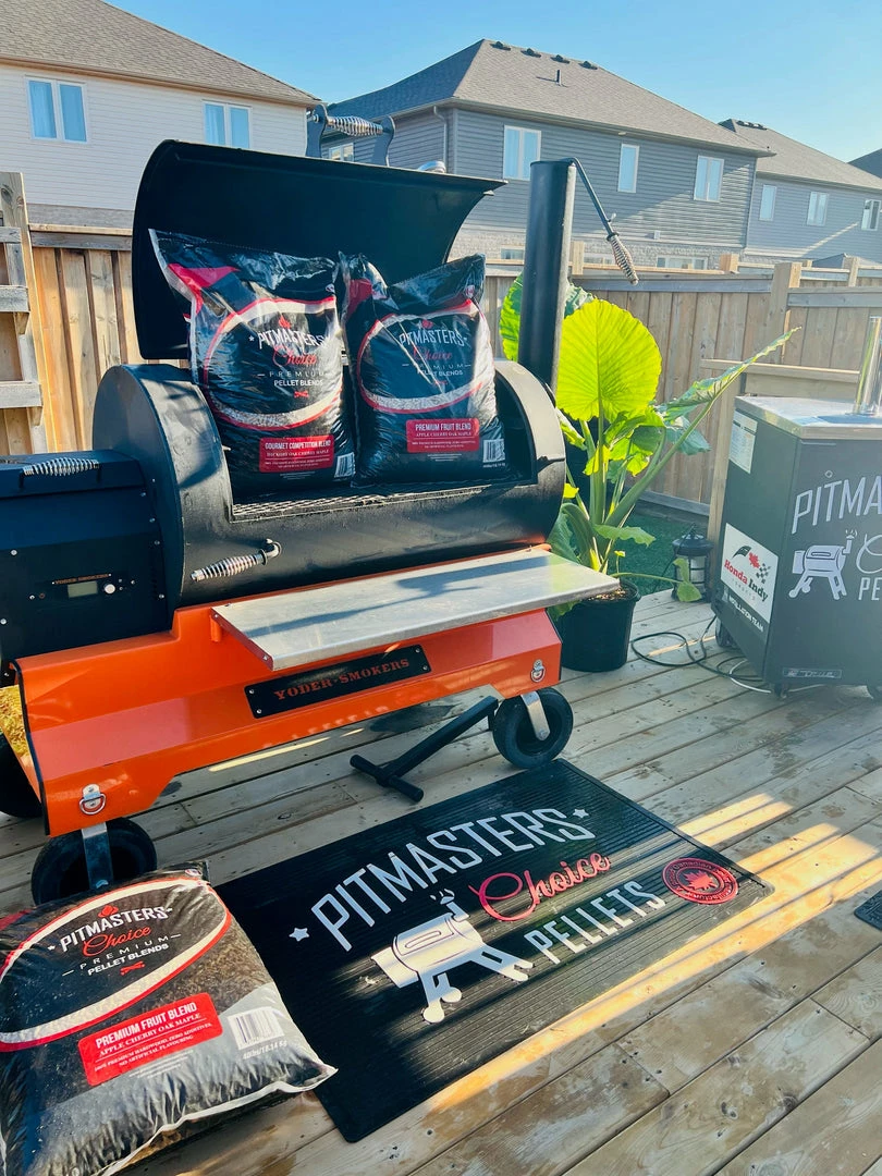 Show off your favorite pellet brand while also protecting your deck with the Pitmasters Choice Pellet BBQ Mat!