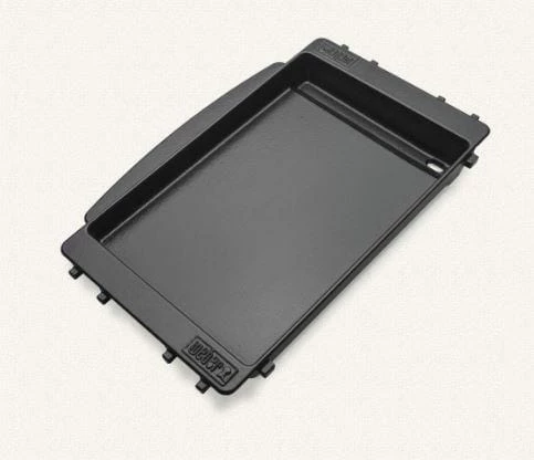 Transform your grill into a multi-functional appliance with the Weber Griddle! The reversible griddle can be used as a flat surface for cooking or flipped over to make an elevated grill. Grill pancakes, eggs, sausages, and bacon in the morning or searing steak and seafood at night. This Weber griddle is made of premium-grade cast aluminum and includes a removable/replaceable heat shield with a drip tray for easy cleanup. Big enough for 17 pancakes, a dozen eggs, and a pound of bacon, the Griddle is the perfect companion for Weber Spirit II 200/300 and Spirit 200/300 Series gas grills. The heavy-duty cast aluminum design ensures even heat distribution so your food will cook evenly every time. It’s also great for searing steaks, cooking burgers and other meats, sautรฉing veggies, or even baking desserts. With all that it can doโcooking breakfast on a warm summer morning or whipping up an entrรฉe on crisp fall eveningโit’s no wonder the Griddle has become a favorite among backyard chefs everywhere. It’s not just a grill, it’s a Griddle. The Weber Grill Griddle has an easy-to-clean semi-gloss porcelain enameled and cast-iron surface. It is the perfect partner for your outdoor kitchen.